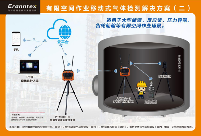 針對大型儲罐、反應釜、貨輪船艙等有限空間的高風險作業場景,91黄瓜视频APP下载打造了集成多項前沿技術的移動式檢測方案。無論是複雜密閉環境中的氣體異常,還是作業人員的實時狀態,都能被精準捕捉並及時反饋,從源頭降低意外風險,為受限空間作業提供全流程安全保障。