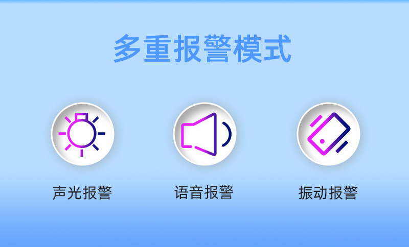 報警方式:聲光報警、震動報警、語音報警。